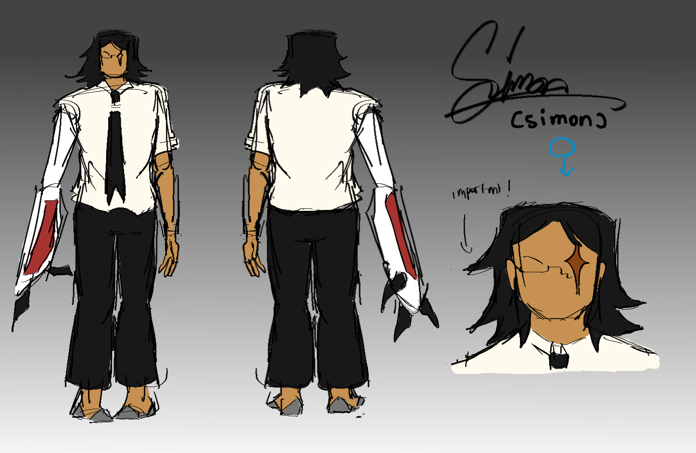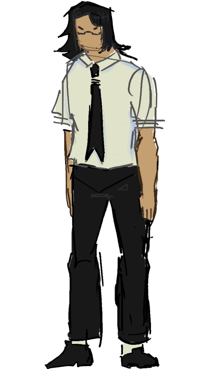 They possess a bleak outlook on life. They are a very deadpan and monotone person, often using sarcasm in their speech. They prefer to use the easiest way to get out of tasks, even when helping others. They really do care about their friends, but they do not know how to show it. Even with close friends, they rarely converse with them , isolating themselves as they think living is easier solitary. They view themselves as an npc in a video game.